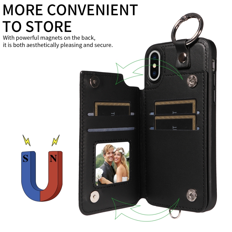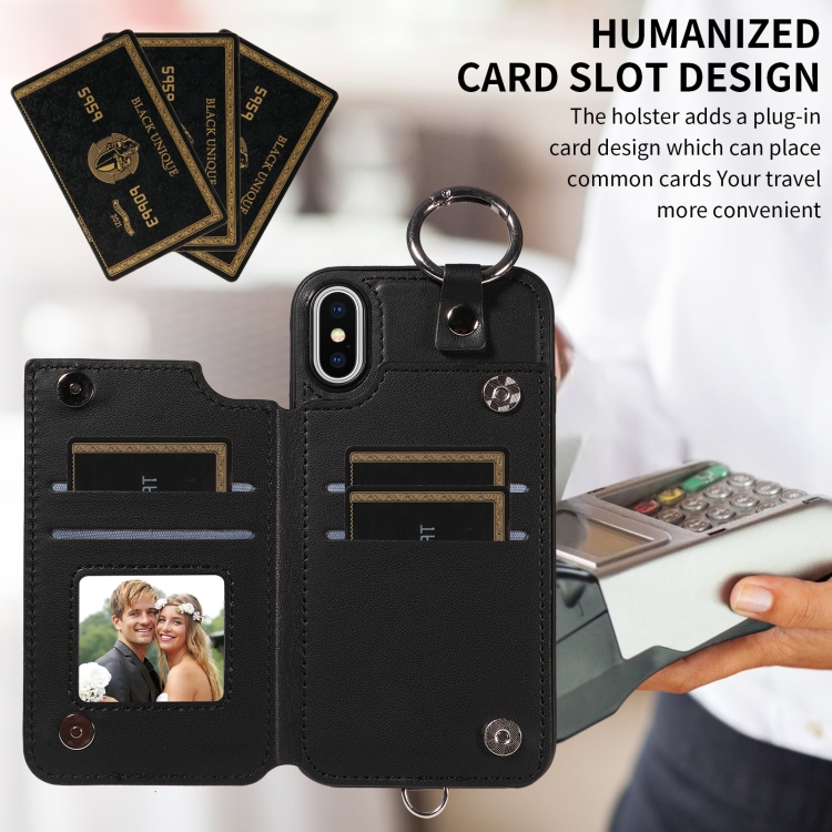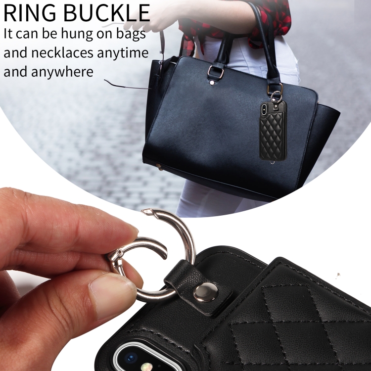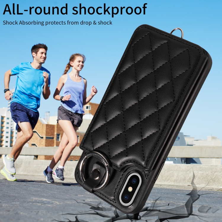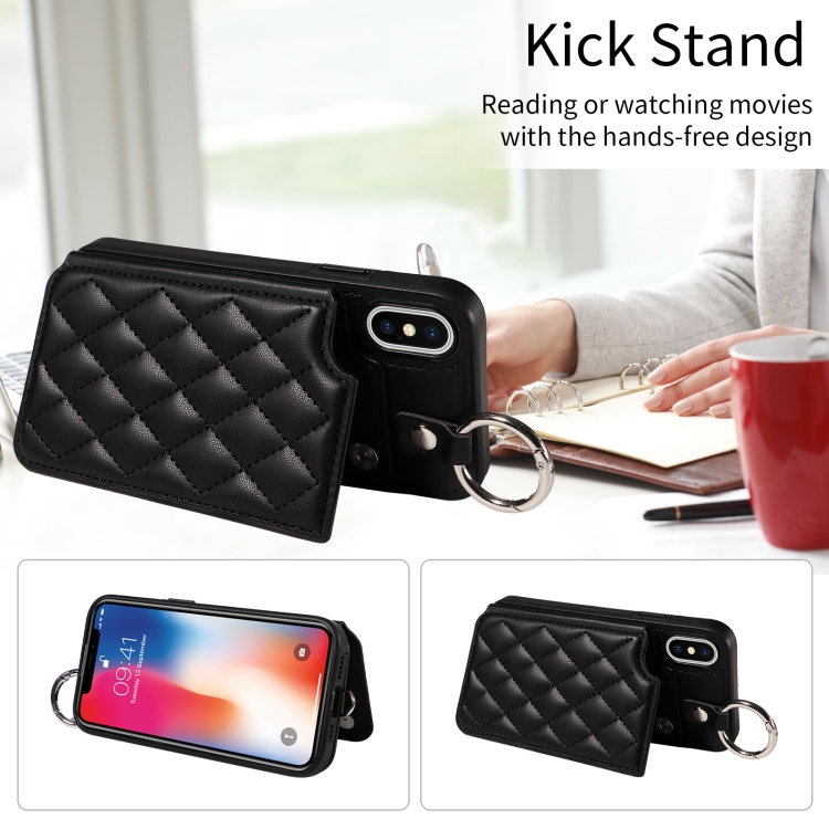 Estuche para Teléfono iPhone Xs / X con Bolsa para Tarjetas Textura Rómbica y Cordón Corto (Negro)