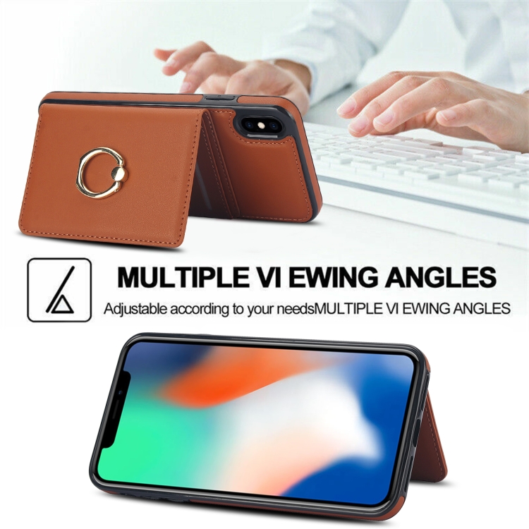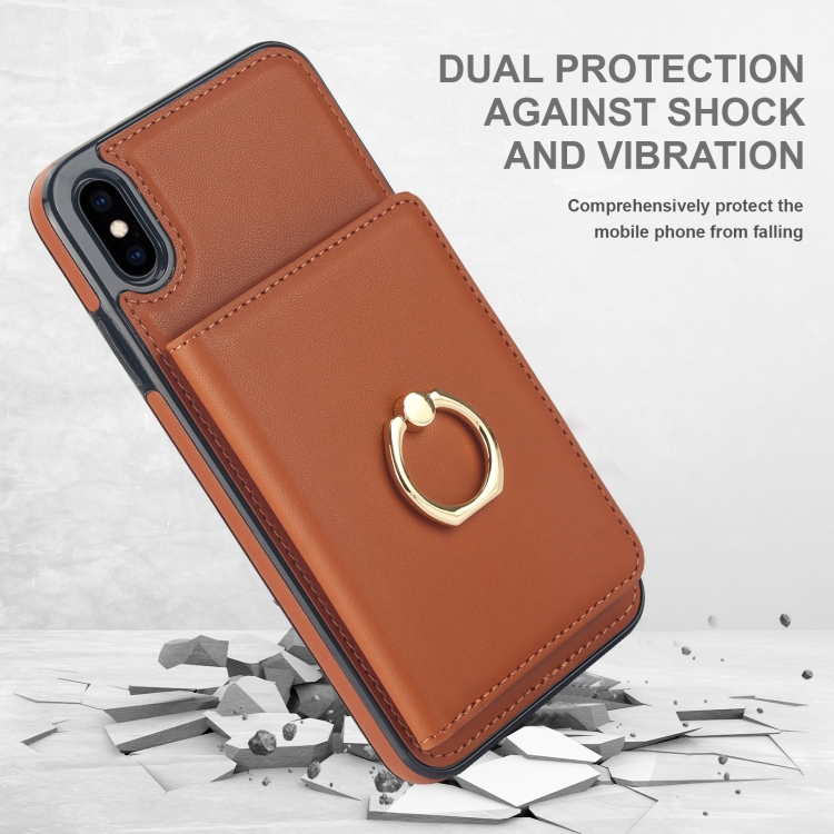Estuche para teléfono iPhone Xs X con soporte anillo tarjeta antirrobo Rfid (Marrón)