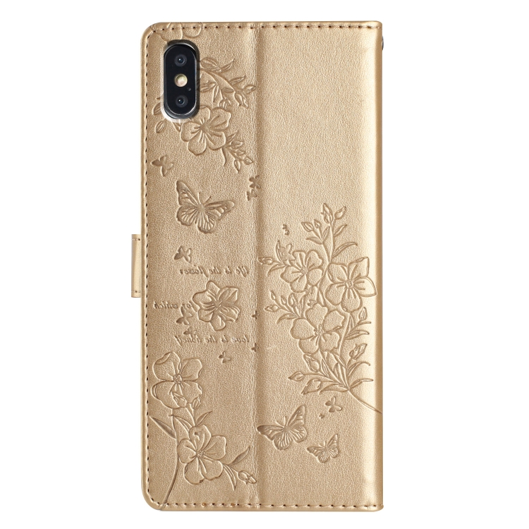 Funda para Teléfono iPhone Xs / X Cuero Relieve Flor de Amor y Mariposa (Dorado)