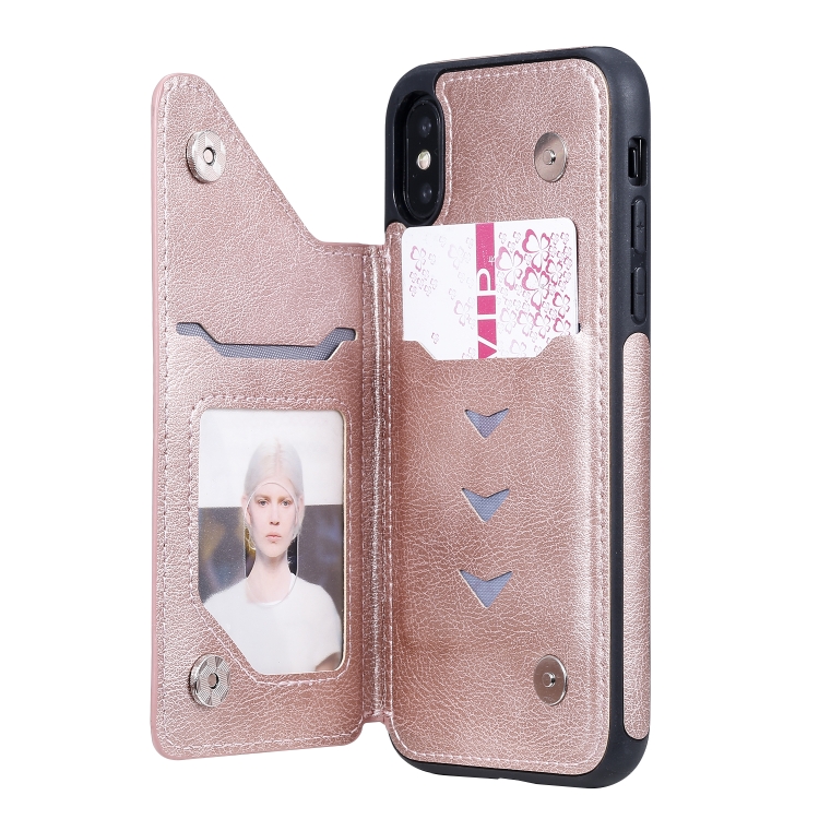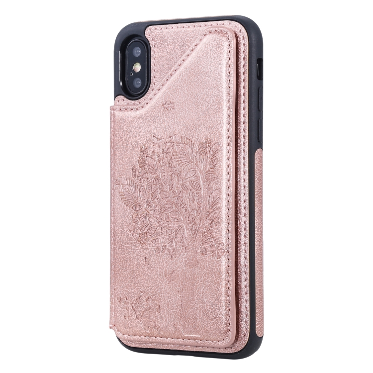 Funda Protectora para iPhone Xs / X a Prueba de Golpes con Patrón Árbol de Gato, Ranuras para Tarjetas, Marco de Fotos y Soporte (Oro Rosa)