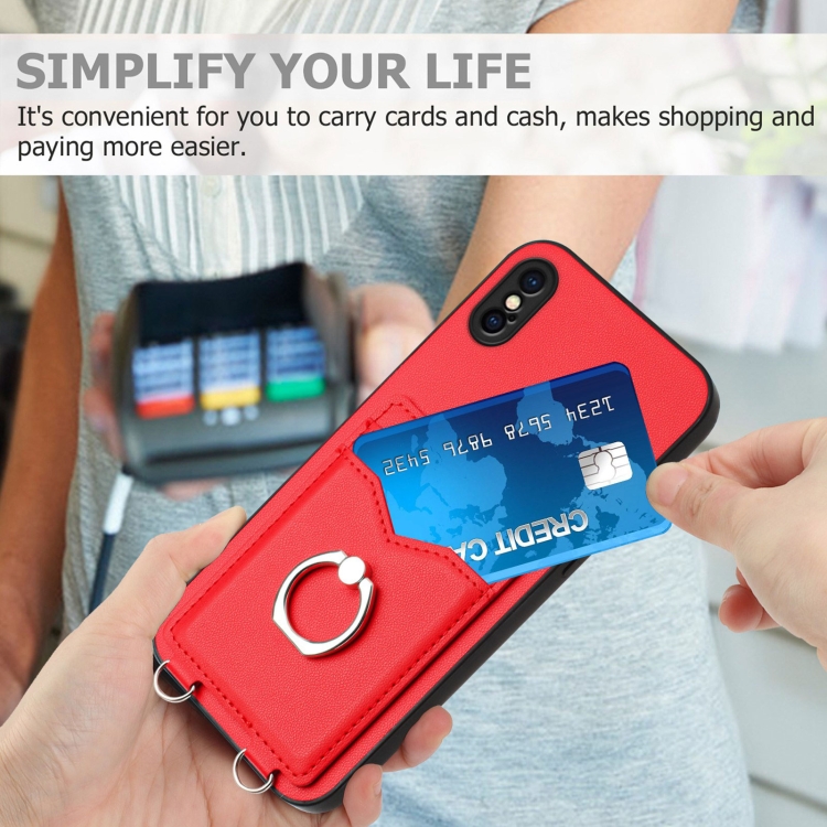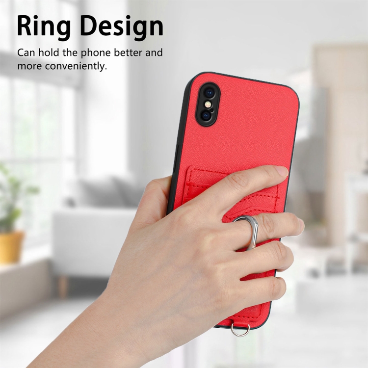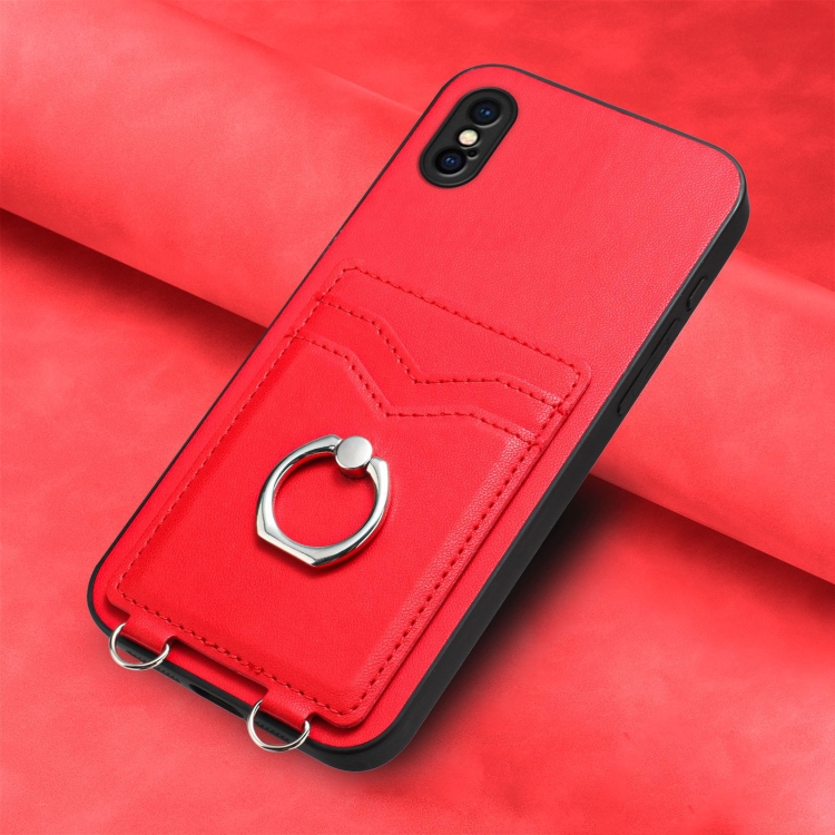 Estuche para teléfono iPhone Xs X R20 con Soporte para Tarjeta con Anillo (Rojo)