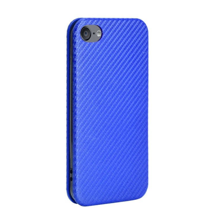 Funda para iPod Touch 5/6/7 Textura Fibra de Carbono Flip Horizontal Magnético TPU PC Cuero PU con Ranura para Tarjeta (Azul)
