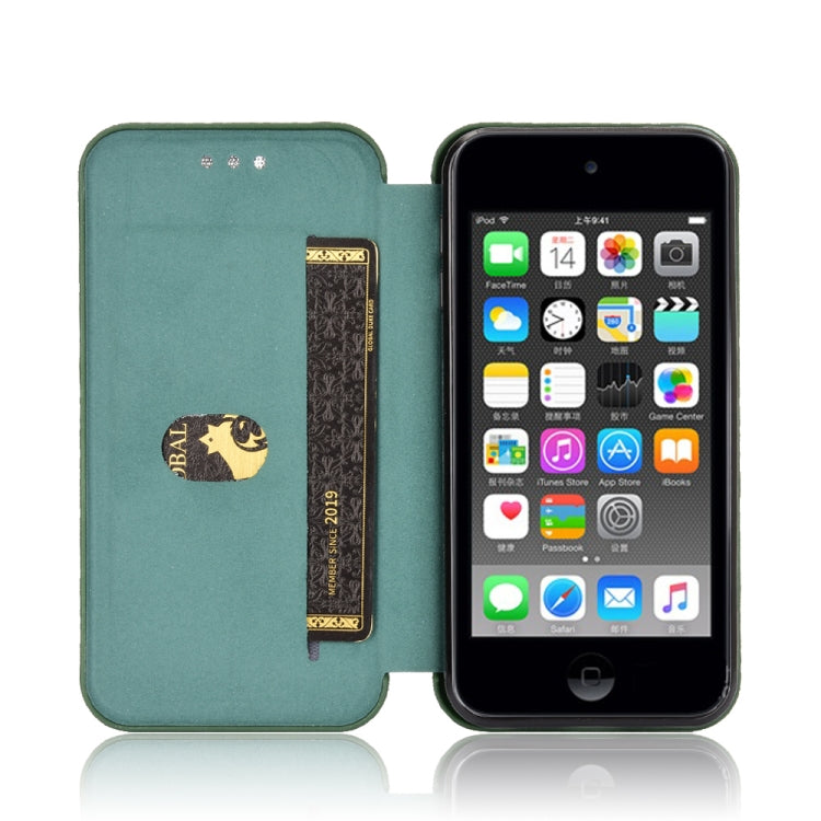 Funda para iPod Touch 5/6/7 Textura Fibra de Carbono Flip Horizontal Magnético TPU PC Cuero Pu Ranura Tarjeta (Verde)