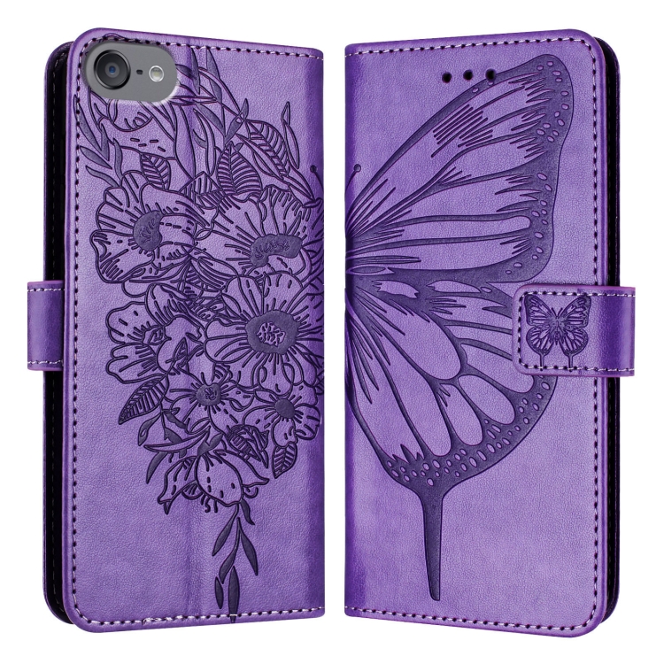 Funda para iPod Touch 7/6/5 de Cuero con Mariposa en Relieve (Púrpura Claro)