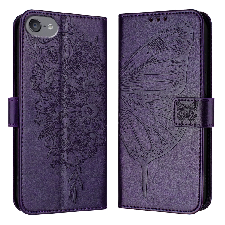 Funda para Teléfono iPod Touch 7/6/5 Cuero Mariposa En Relieve (Púrpura Oscuro)