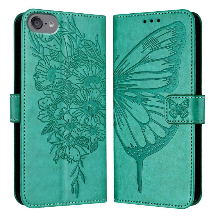 Funda para Teléfono iPod Touch 7/6/5 Cuero Mariposa En Relieve (Verde)
