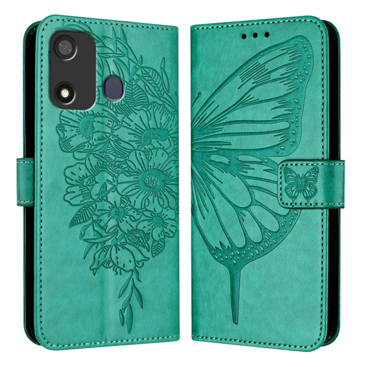 Funda de Cuero para Itel P17 / A27 con Mariposa en Relieve (Verde)