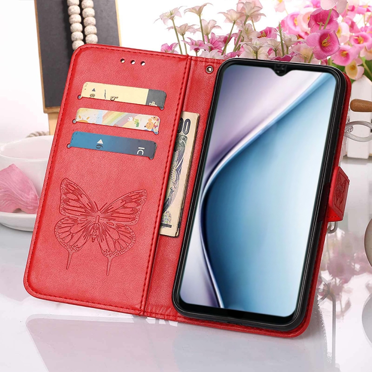 Estuche para Teléfono Itel P38 S17 S1661W Vision 3 Cuero con Tapa Mariposa (Rojo)