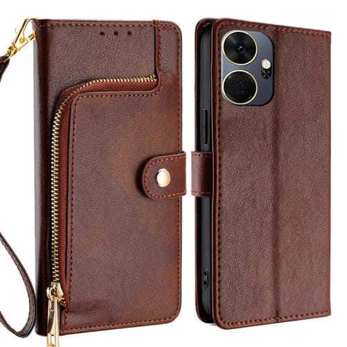 Funda de Cuero para Itel P55 + 4G con Bolsa y Cremallera (Marrón)