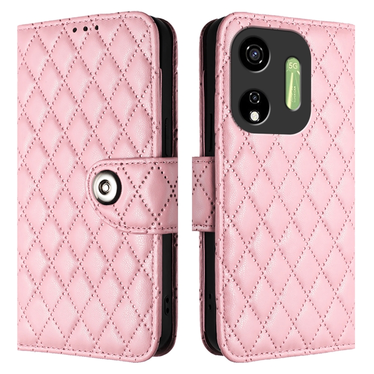 Funda para Itel P55 5G con Tapa de Cuero, Textura Rómbica y Cordón (Rosa)