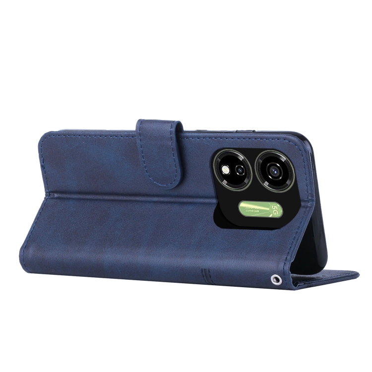 Funda para Itel P55 5G de Cuero con Hebilla y Textura de Pantorrilla (Azul)