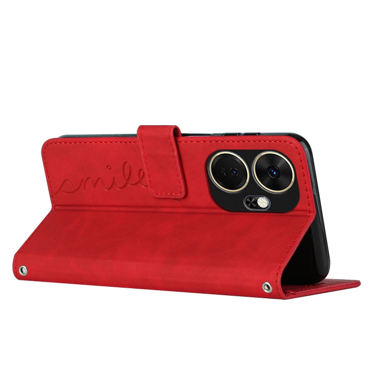 Funda de Cuero para Itel P55 con Relieve y Cordón Largo (Rojo) Skin Feel Heart