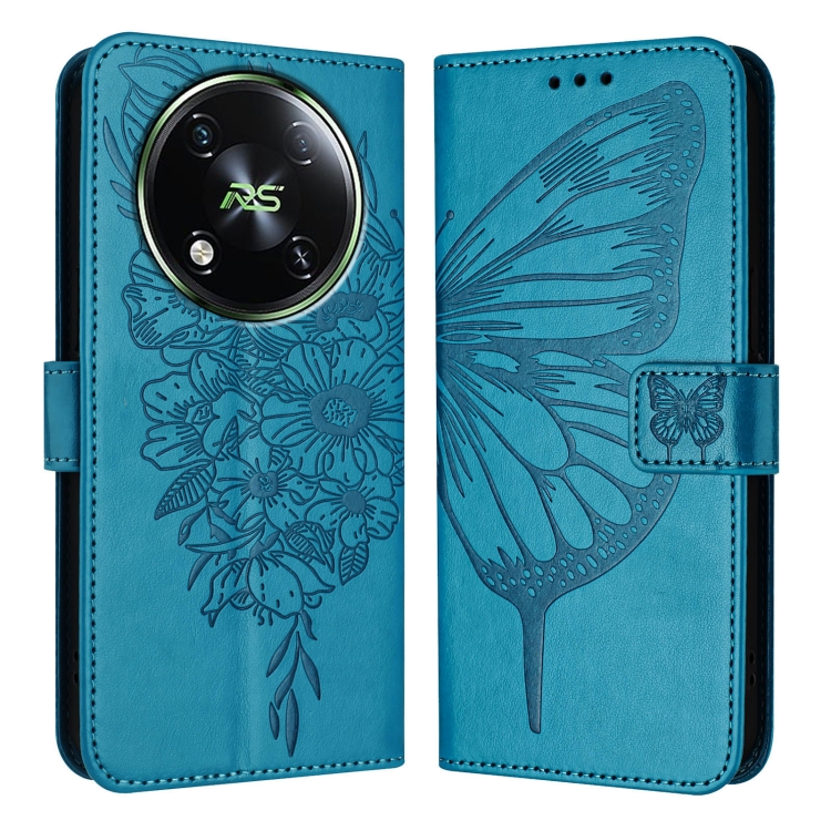 Funda para Teléfono Itel Rs4 S666Ln Cuero con Mariposa en Relieve (Azul)