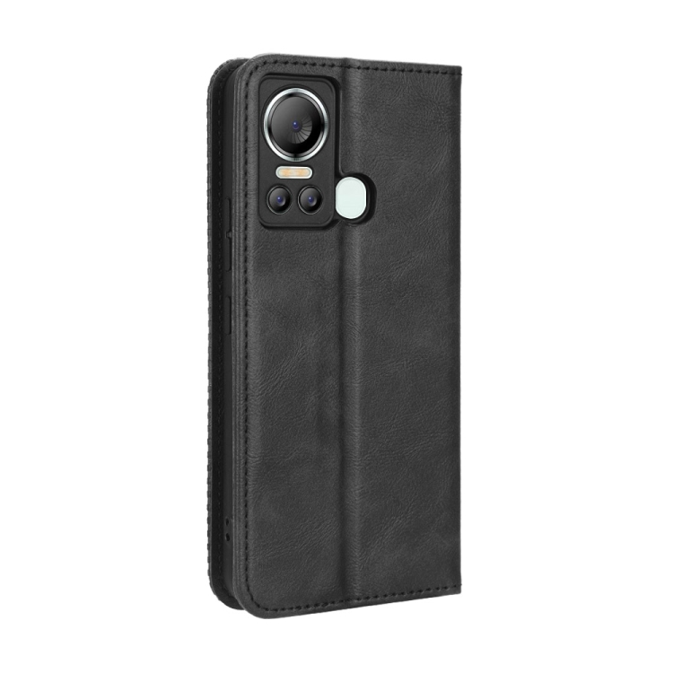 Funda de Cuero Itel S18 S663L con Hebilla Magnética y Textura Retro (Negro)