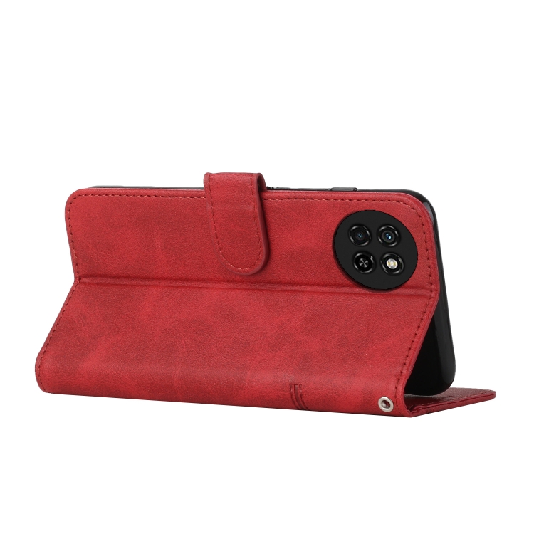 Funda para Teléfono Itel S23 Cuero con Hebilla y Textura de Becerro (Rojo)
