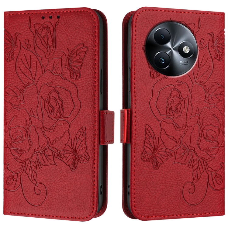 Estuche para Itel S24 de Cuero Antirrobo RFID con Rosa en Relieve (Rojo)