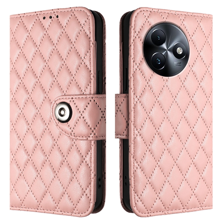 Funda para Teléfono Itel S24 con Tapa de Cuero, Textura Rómbica y Cordón (Rosa Coral)
