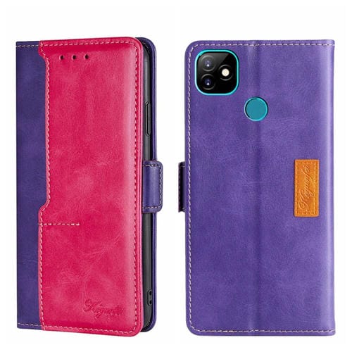 Caja de Teléfono de Cuero para Itel Vision 1 con Hebilla Lateral y Color de Contraste (Púrpura + Rosa Roja)