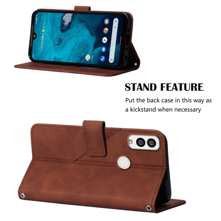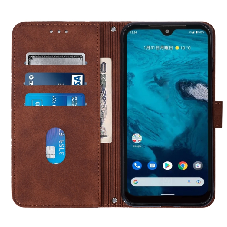Funda de Cuero Kyocera Android One S9 Crossbody 3D con Tapa En Relieve (Marrón)