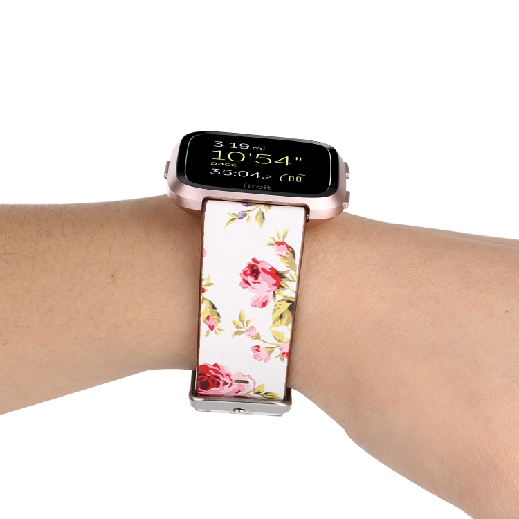Banda de Reloj Fitbit Versa 1/2 Patrón de Flores (Rosa Blanco)