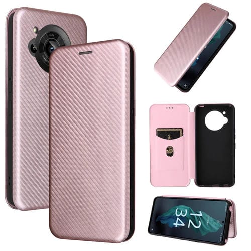 Funda magnética de cuero fibra de carbono para Aquos R7 (Oro Rosa)
