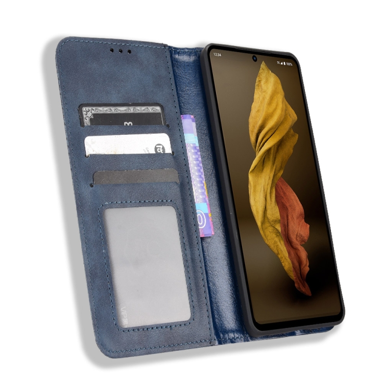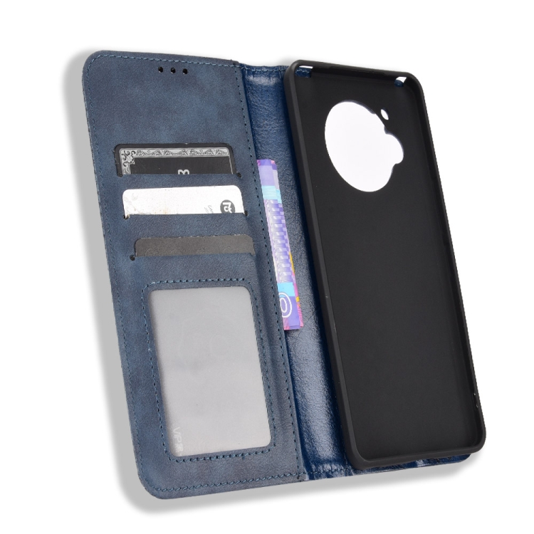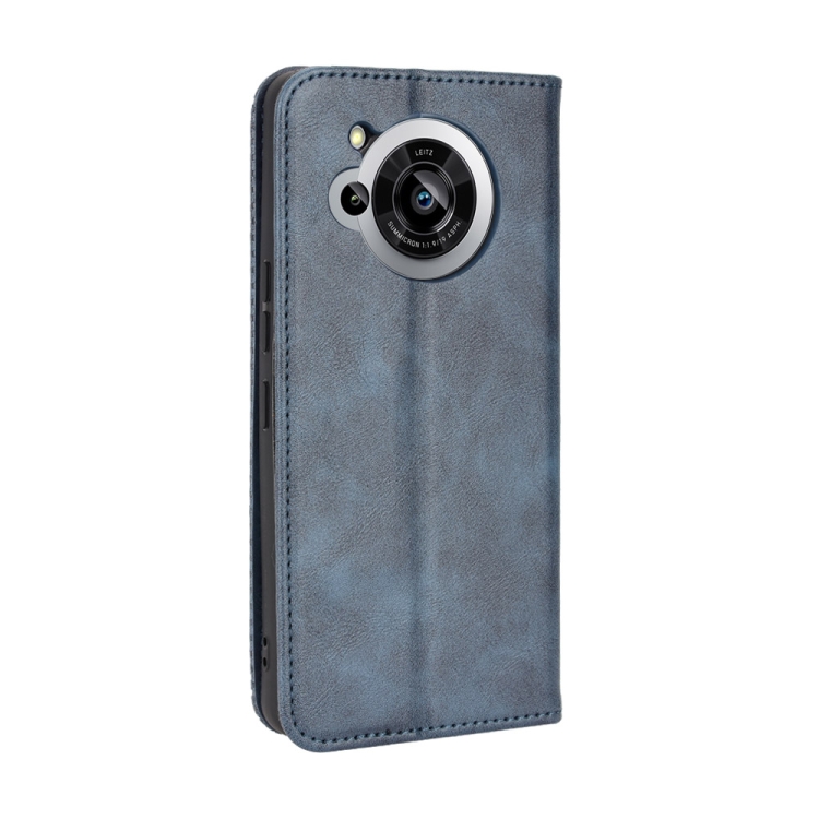 Funda para Aquos R7 de Cuero Retro con Hebilla Magnética (Azul)