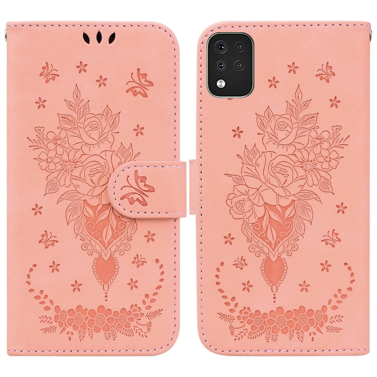 Funda de Cuero con Relieve de Mariposa para LG K42 Butterfly (Rosa)