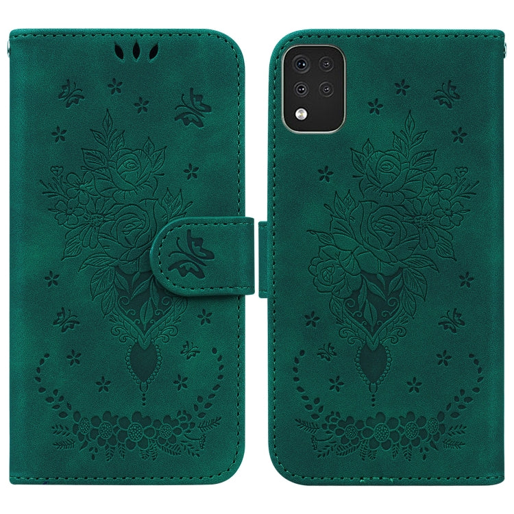 Funda de Cuero en Relieve Mariposa para LG K42 (Verde)