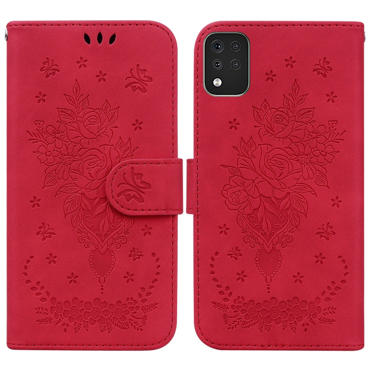 Funda de Cuero en Relieve LG K42 Butterfly Rose para Teléfono (Rojo)