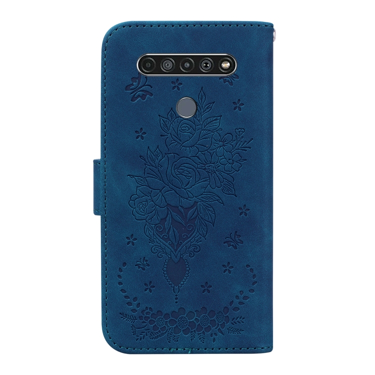 Caja para Teléfono LG K61 Butterfly Rose de Cuero en Relieve (Azul)