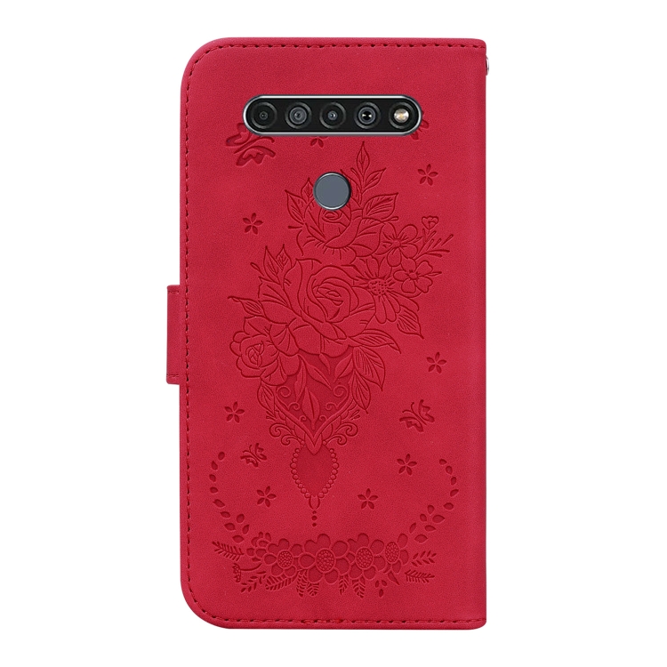 Caja de Cuero en Relieve LG K61 Butterfly Rose (Rojo) para Teléfono