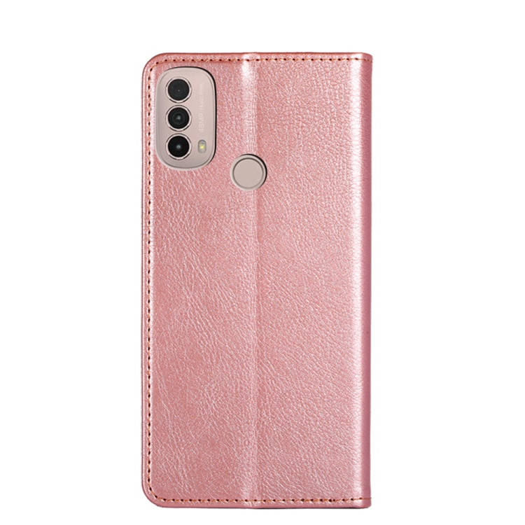 Funda de Cuero Magnético para Motorola E40 (Oro Rosa) Color Sólido Brillante
