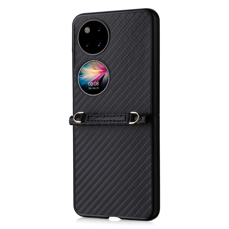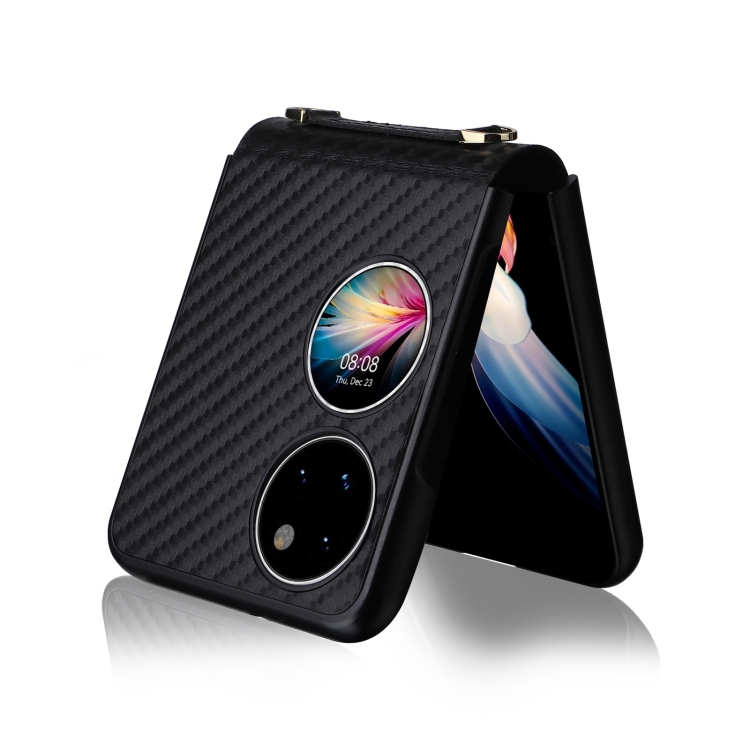 Para la textura de fibra de carbono de bolsillo Huawei P50 PU + TPU TPU Case (negro)