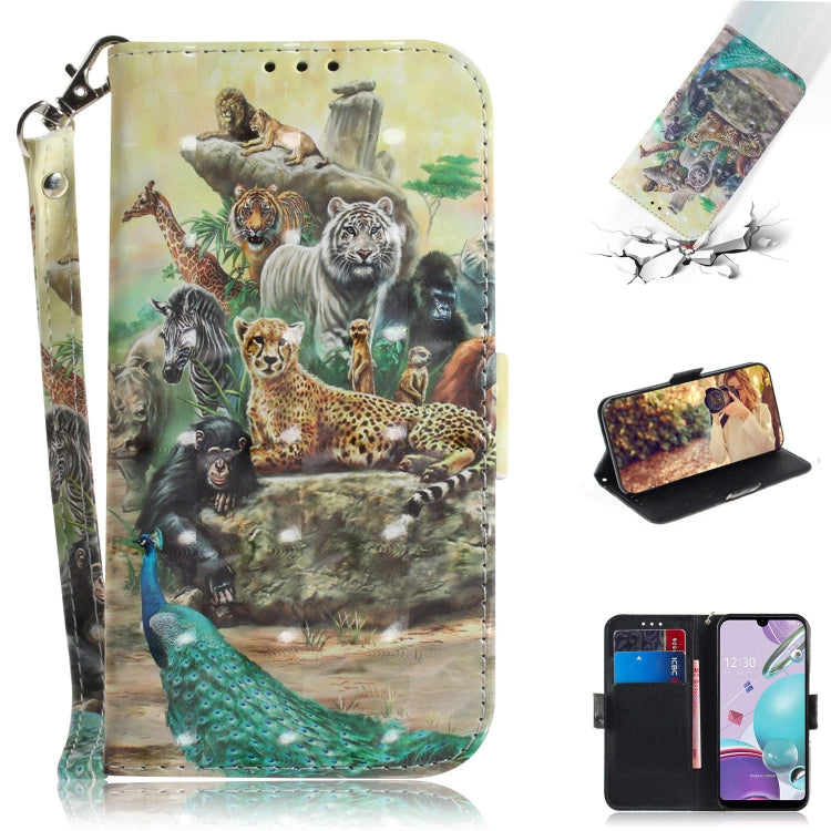 Funda de Cuero Abatible Horizontal para LG Aristo 5 con Dibujo 3D, Soporte, Ranuras y Cordón (Zoo)