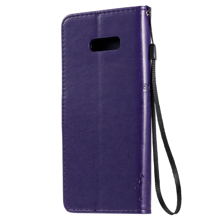 Estuche de Cuero PU para LG G8X con Diseño de Árbol y Gato, Soporte, Ranuras y Billetera (Púrpura)