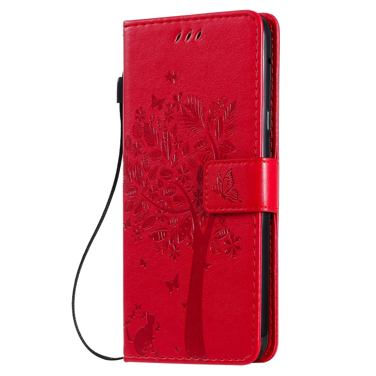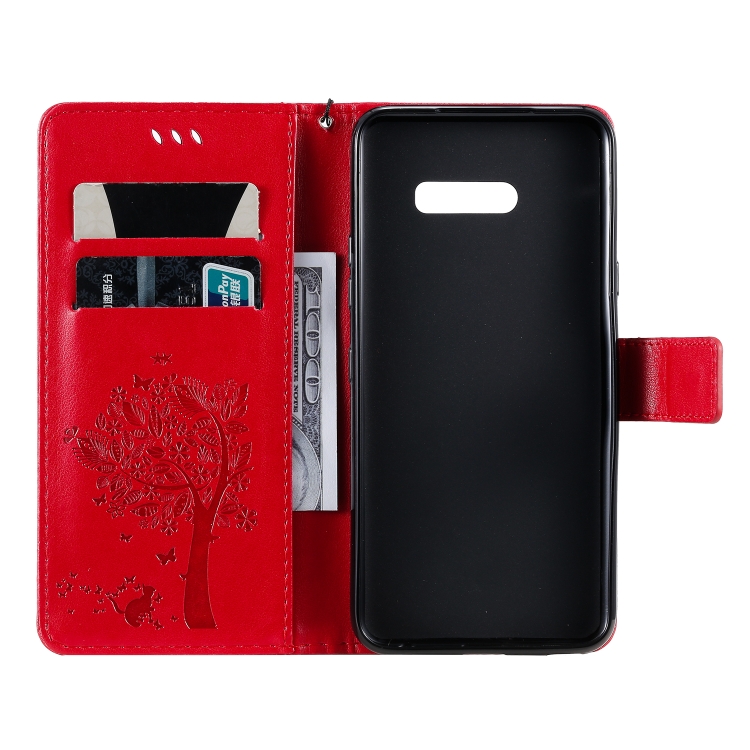 Funda Cuero PU LG G8X con Tapa Horizontal, Soporte, Ranuras para Tarjetas, Billetera y Cordón (Rojo)