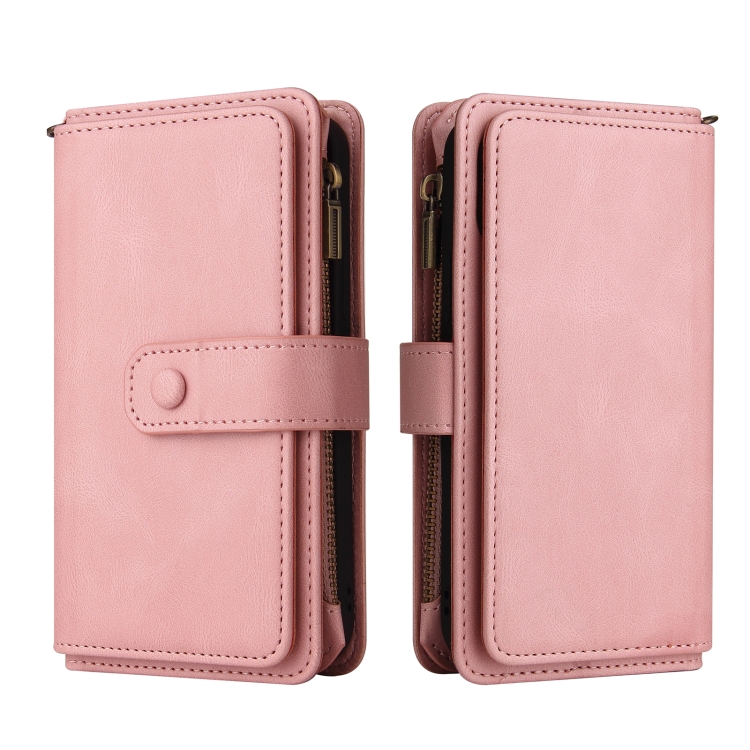 Funda de Cuero Horizontal Flip para LG G9 Velvet Skin Feel con Titular, 15 Tarjetas, Wallet, Cripper Pocket y Lanyard (Rosa)