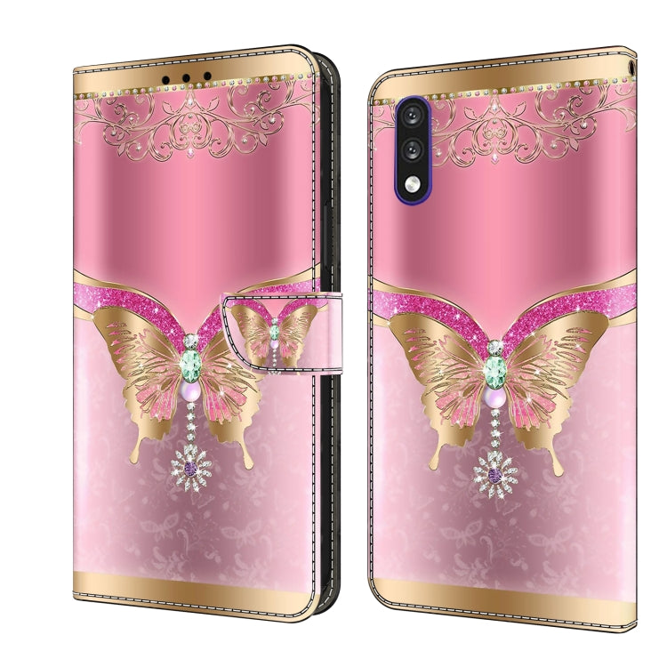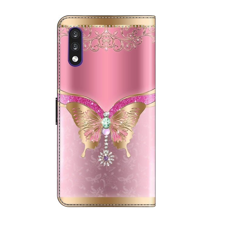 Funda Protectora de Cuero Crystal 3D para LG K22 / K22 Plus a Prueba de Golpes (Mariposa Inferior Rosa)