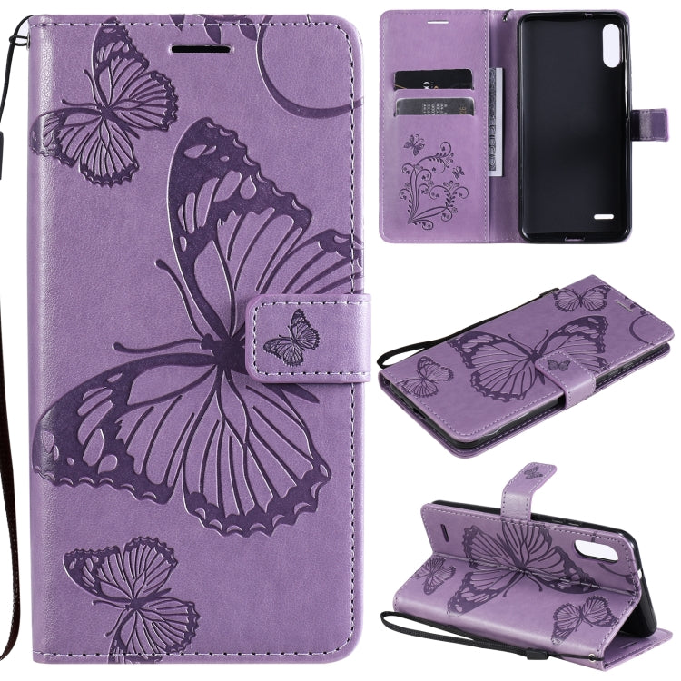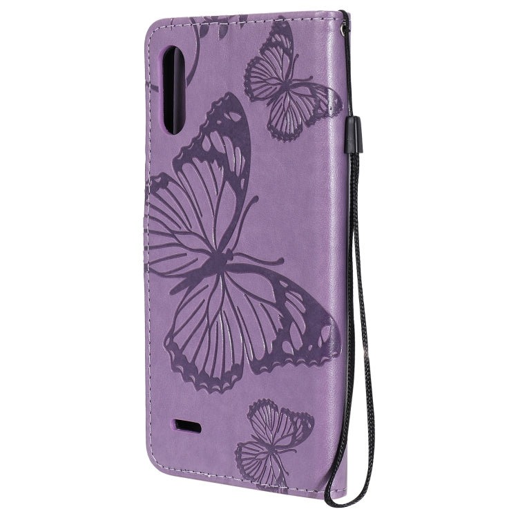 Funda de Cuero para LG K22 / K22 Plus con Estampado Mariposas 3D, Tapa Horizontal, Soporte, Ranura para Tarjeta y Billetera (Púrpura)