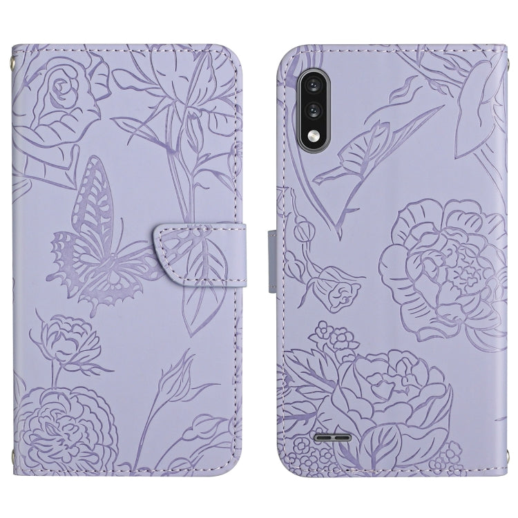 Funda de Cuero con Relieve Peonía y Mariposa para LG K22 (Púrpura)
