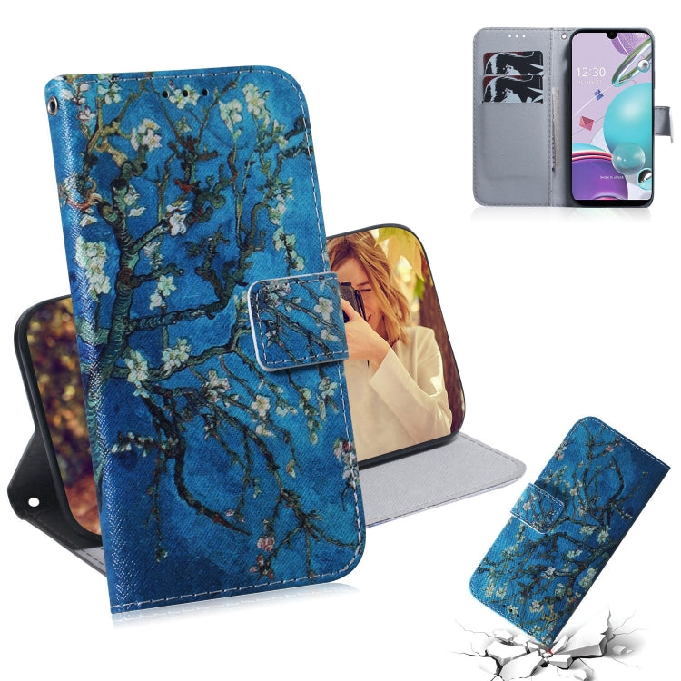 Funda de Cuero Abatible Horizontal para LG K31 Aristo 5 con Soporte, Ranuras para Tarjetas y Billetera (Flor de Albaricoque)