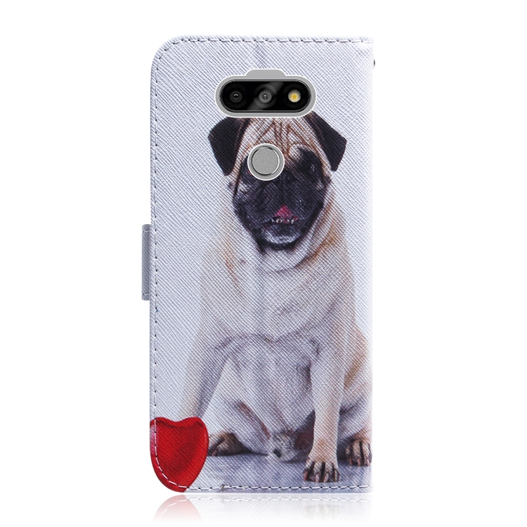 Funda de Cuero Abatible Horizontal para LG K31 / Aristo 5 con Soporte, Ranuras para Tarjetas y Billetera (Pug)