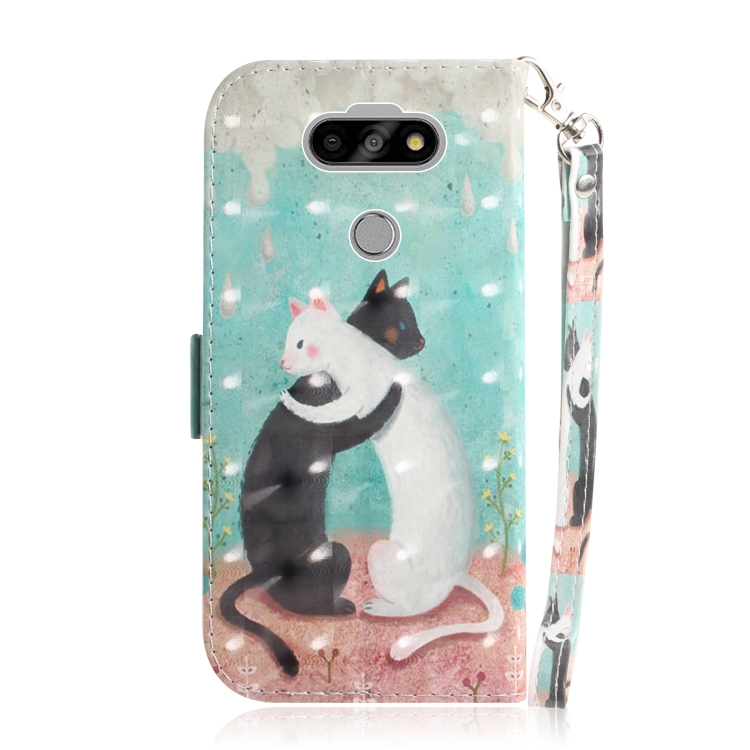 Funda de Cuero Abatible Horizontal para LG K31 con Dibujo 3D, Soporte, Ranuras y Cordón (Gato Blanco y Negro)