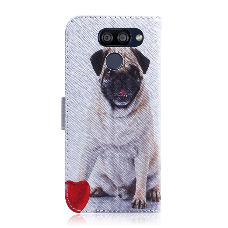 Estuche de Cuero Abatible Horizontal para LG K40S con Atracción Magnética, Soporte y Ranura para Tarjeta (Pugs)