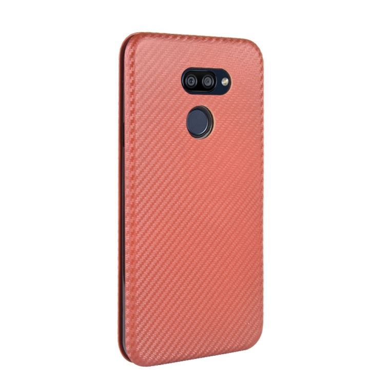 Funda Cuero para LG K40S con Tapa Magnética Horizontal Textura Fibra de Carbono (Marrón)