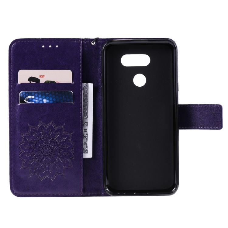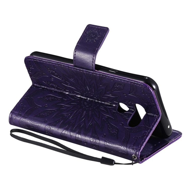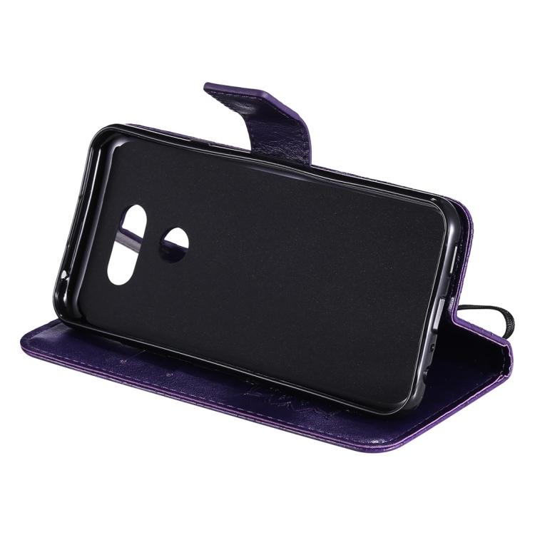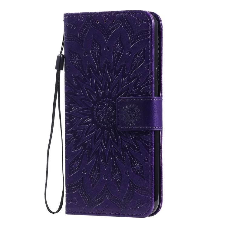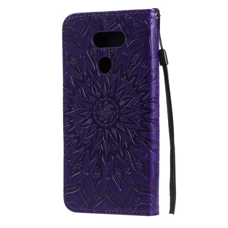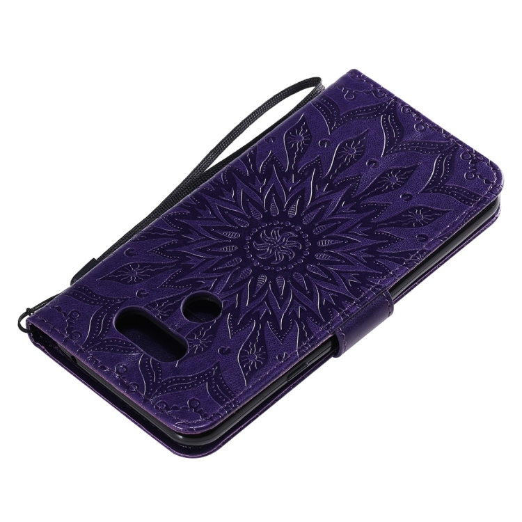 Funda Cuero PU LG K40S con Tapa Horizontal, Soporte, Ranuras para Tarjetas, Billetera y Cordón (Púrpura)