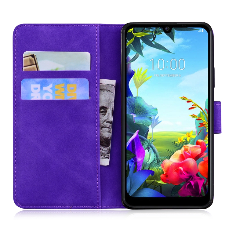 Funda Piel para LG K40S Caja de Cuero Pliegue Color Puro (Púrpura)