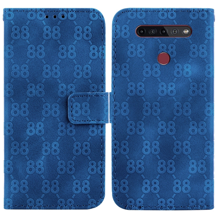 Estuche para LG K41S y K51S de Cuero en Relieve con Doble Forma de 8 (Azul)
