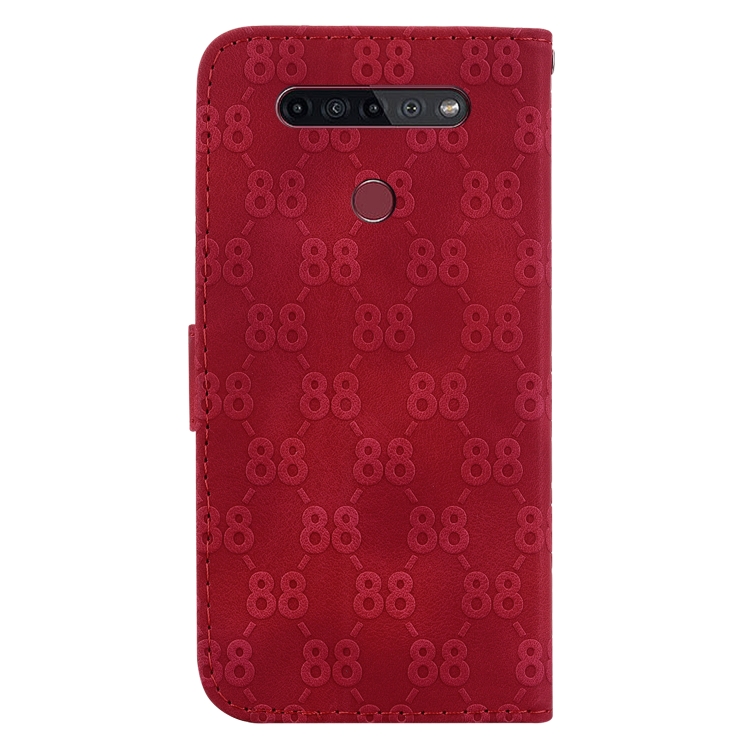 Estuche para Teléfono LG K41S K51S Cuero En Relieve Doble Forma de 8 (Rojo)