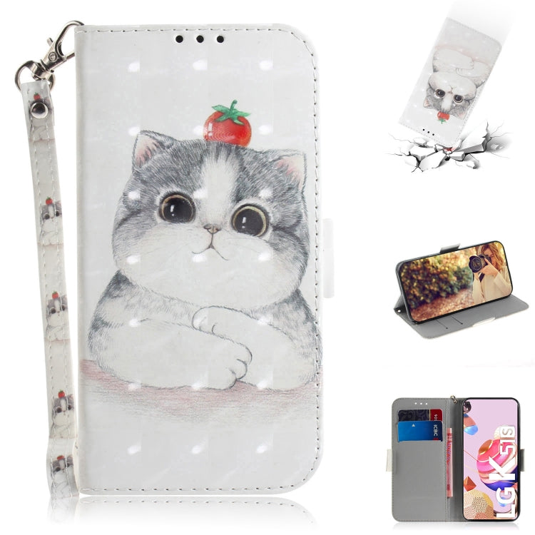 Funda Cuero Abatible Horizontal LG K41S K51S con Dibujo 3D, Soporte, Ranuras y Cordón (Cute Cat)